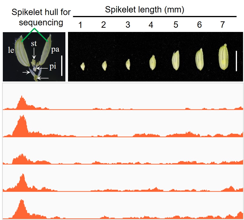The samples were collected from the hulls of developing spikelet stages with lengths of 1, 2, 3, 4, 5, 6, and 7 mm of MH63, named SL1 to SL7, respectively. The raw sequencing data can be downloaded via NCBI Sequence Read Archive (SRA) under the BioProject accession number PRJNA1162035 and PRJNA1161476, respectively.